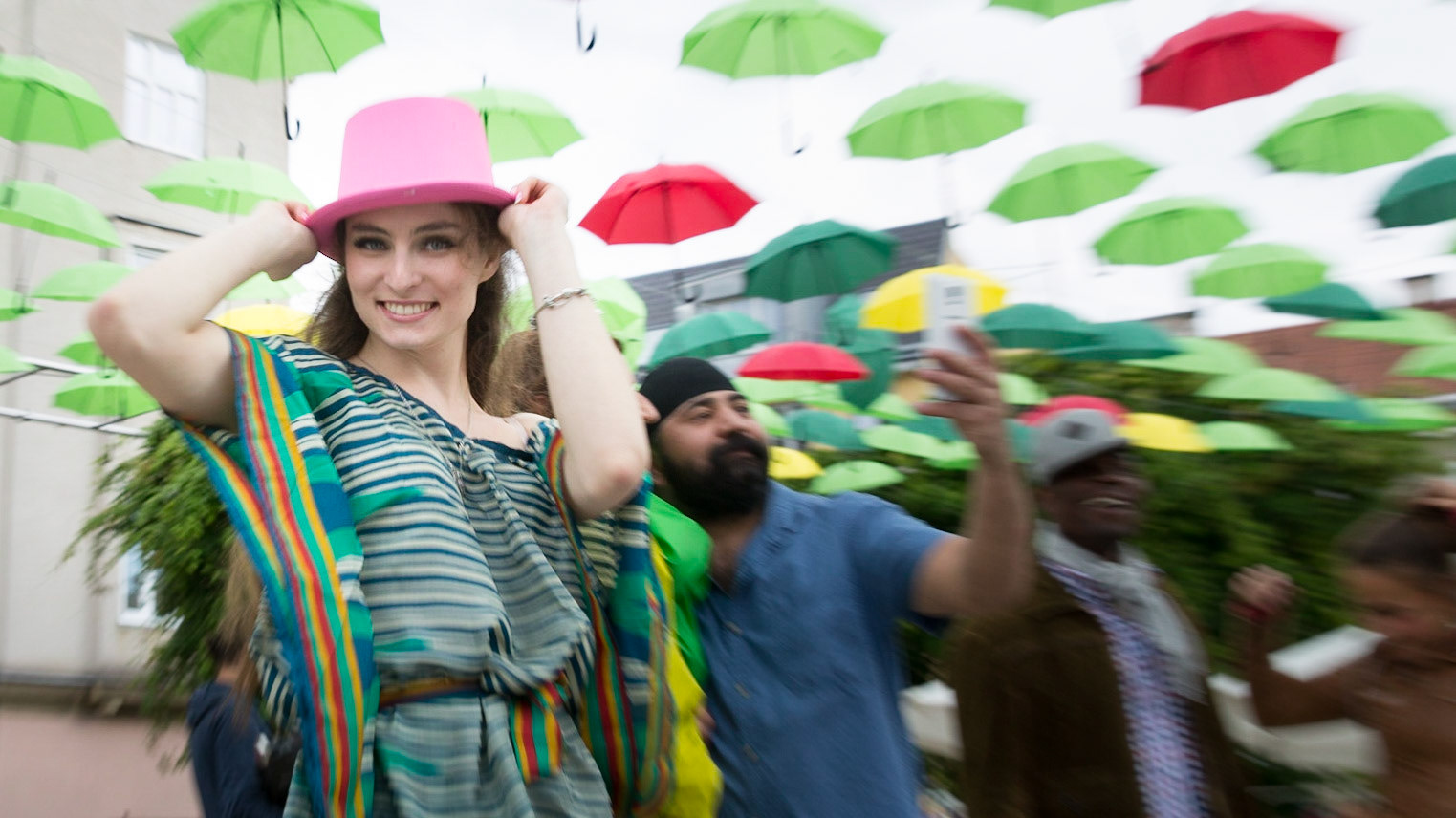 … wenn die Begeisterung durchbricht (Event "Wien lebt" am Dornerplatz in Wien).